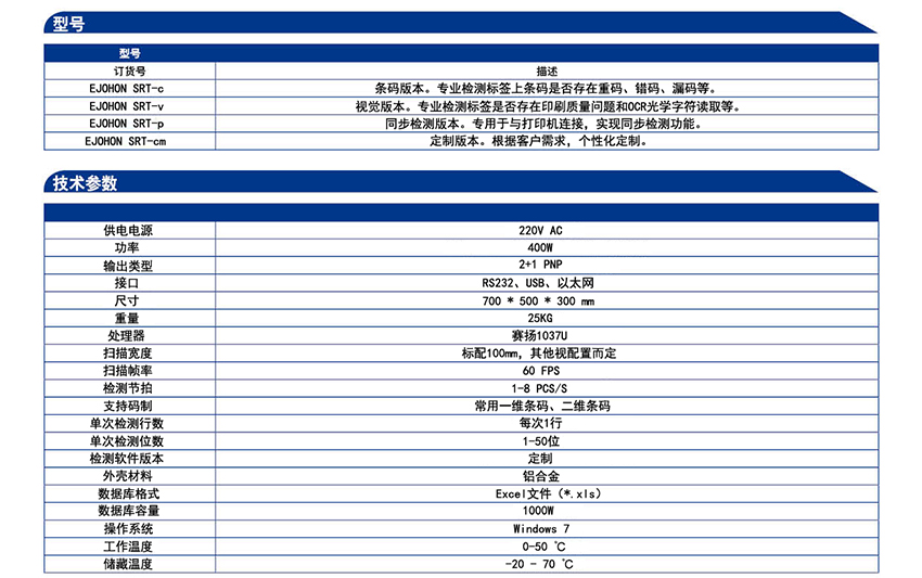 EJOHON SRT-v 視覺(jué)防重(視覺(jué)版本,專業(yè)檢測(cè)標(biāo)簽是否存在印刷質(zhì)量問(wèn)題和OCR光學(xué)字符讀取等)