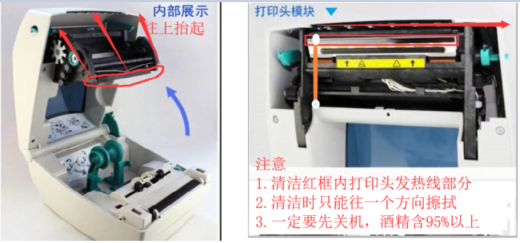 5. 打印大量卷標簽后出現打印文字印不清晰,不清晰就會影響到識別,并且屬于NG標簽,針對此問題那么讓我提供斑馬GK888打半張閃紅燈打印機怎么辦-快速解決教程可給大家方法進行處理,打印不清晰原因有3種因素質:因大量打印標簽碳帶熱升華后殘留的碳粉在打印頭發印字部分導致打印出的文字不清晰,那么我們就用以下方法來進行處理,其一.是把打印機關機,用95%以上的酒精和棉簽或棉布進行清潔打印頭