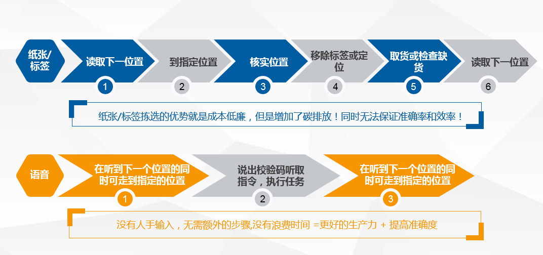 1,在對比中,多模式方案在揀貨流程的幾乎每個方面都顯示出比單語音更高的效益。