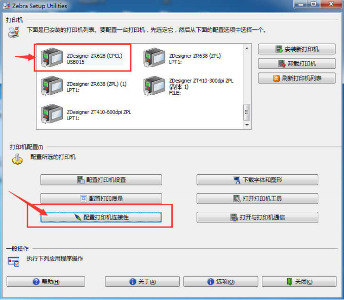 1、將打印機用 USB 線連接電腦,之后打開 Zebra Setup Utilities,選中對應的打印機驅動-點擊配置打印機連接;