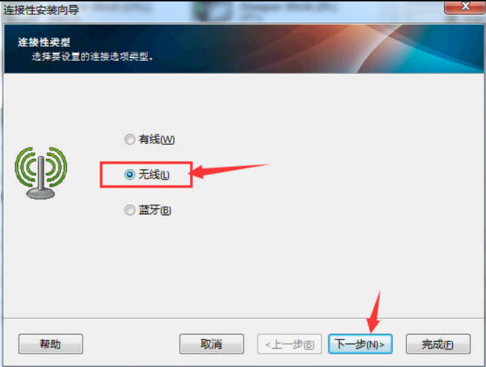 2、選擇無線,點擊下一步