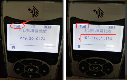 打印機自動重啟完成后會顯示有對應的 WIFI 圖標和對應自動分配的 IP 地址,如下: