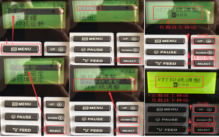1.8打印機(jī)打印偏移設(shè)置操作,如下圖1-6步驟按MENU直到Ready.