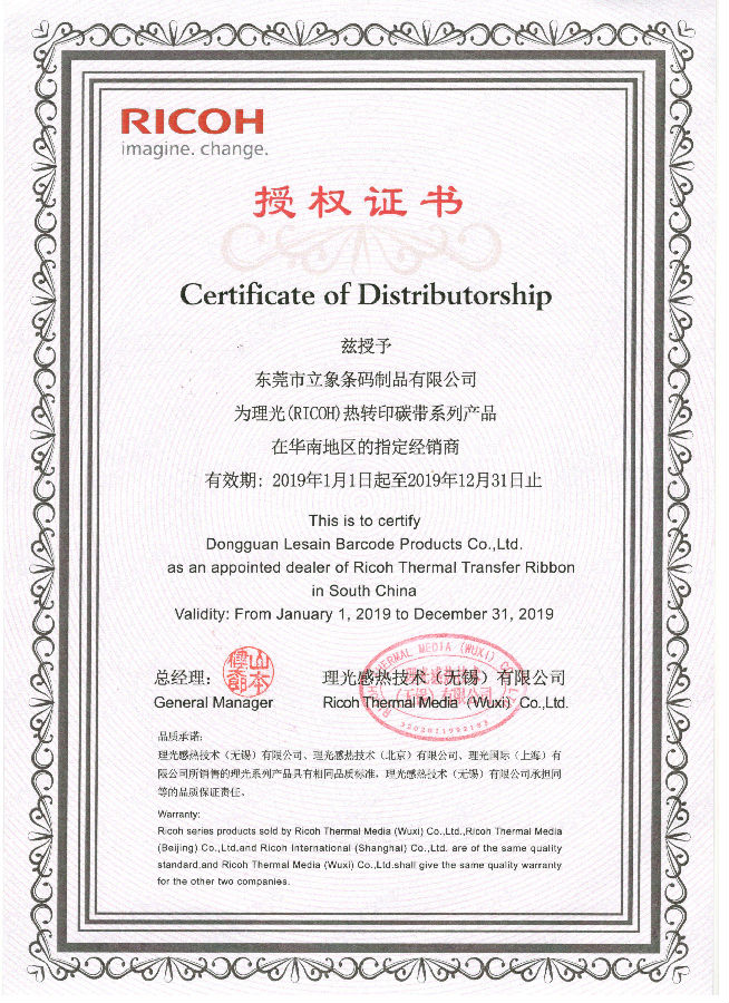 東莞市立象條碼制品有限公司,主營條碼打印機,條碼掃描槍,數據采集器,條碼軟件,不干膠標簽,條碼碳帶等,提供優質的售后服務,在東莞,廣東,深圳,珠海,江蘇,成都,長沙等地區為客戶帶來全方位的服務,如果您想了解更多關于理光碳帶的信息,可以撥打我司全國統一熱線:0769-22882629,官方網址:www.lesain.com和m.dingdangxiang.cn